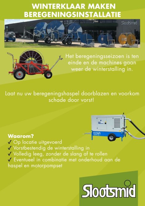 - Uw machine is winterklaar en u heeft er geen omkijken meer naar voor het volgende beregeningsseizoen