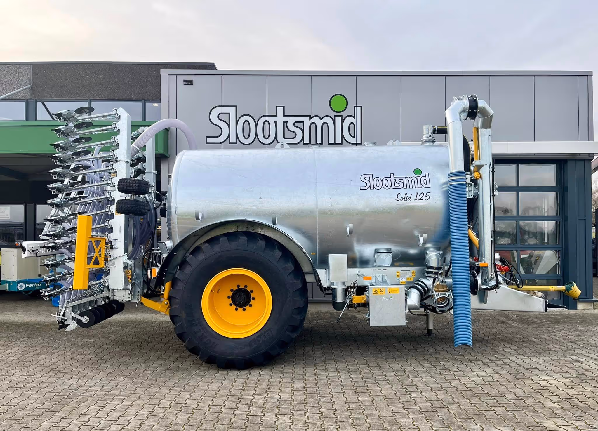 NIEUW!!! De eerste van onze nieuwe serie Slootsmid Solid 125 tanken is inmiddels volop in gebruik genomen. De combinatie met 6.60 meter brede SK grasland bemester en deze zeer complete Solid 125 vacuum tank komt in de verhuur te lopen bij Mechanisatiebedrijf Kamminga uit Haarlo.