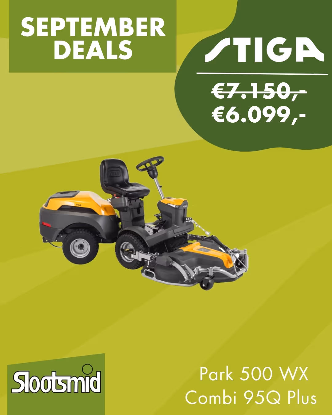 Slootsmid biedt een breed assortiment Stiga zitmaaier modellen aan. Profiteer tot 30 september 2025 van aantrekkelijke korting op diverse modellen. De machines zijn direct uit voorraad leverbaar, zolang de voorraad strekt!