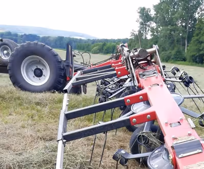 - Optioneel hydraulisch opklapbaar zwadbord voor het schudden van de perceelsranden