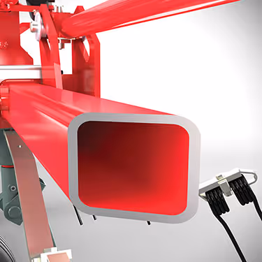 Dankzij het SLS (Security Lock System) van Massey Ferguson is tijdens het klappen maximale veiligheid van uw machine gegarandeerd. SLS is een automatisch, hydraulisch aangedreven uitschakel- en positioneringssysteem, met geïntegreerd vliegwiel dat de overdracht van kracht naar de rotors onderbreekt wanneer de machinehelften worden geklapt. Daardoor wordt een hoge mate aan veiligheid gegarandeerd in transportpositie en tijdens onderhoudswerkzaamheden. Mogelijke schade aan de aandrijving wordt ook geminimaliseerd bij onjuiste bediening.