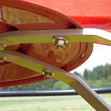 Alle Massey Ferguson-schudders zijn standaard uitgerust met tandverliesbeveiliging. Dit beschermt zowel de machines alsmede uw waardevolle veestapel. De tanden zijn vastgezet onder de tandarm. Deze plaatsing heeft als voordeel dat de bovenzijde glad is en er dus geen gewas blijft hangen. Bovendien heeft de tand meer bewegingsvrijheid, wat bijdraagt aan een optimale verwerking van uw hoogwaardige gewas.