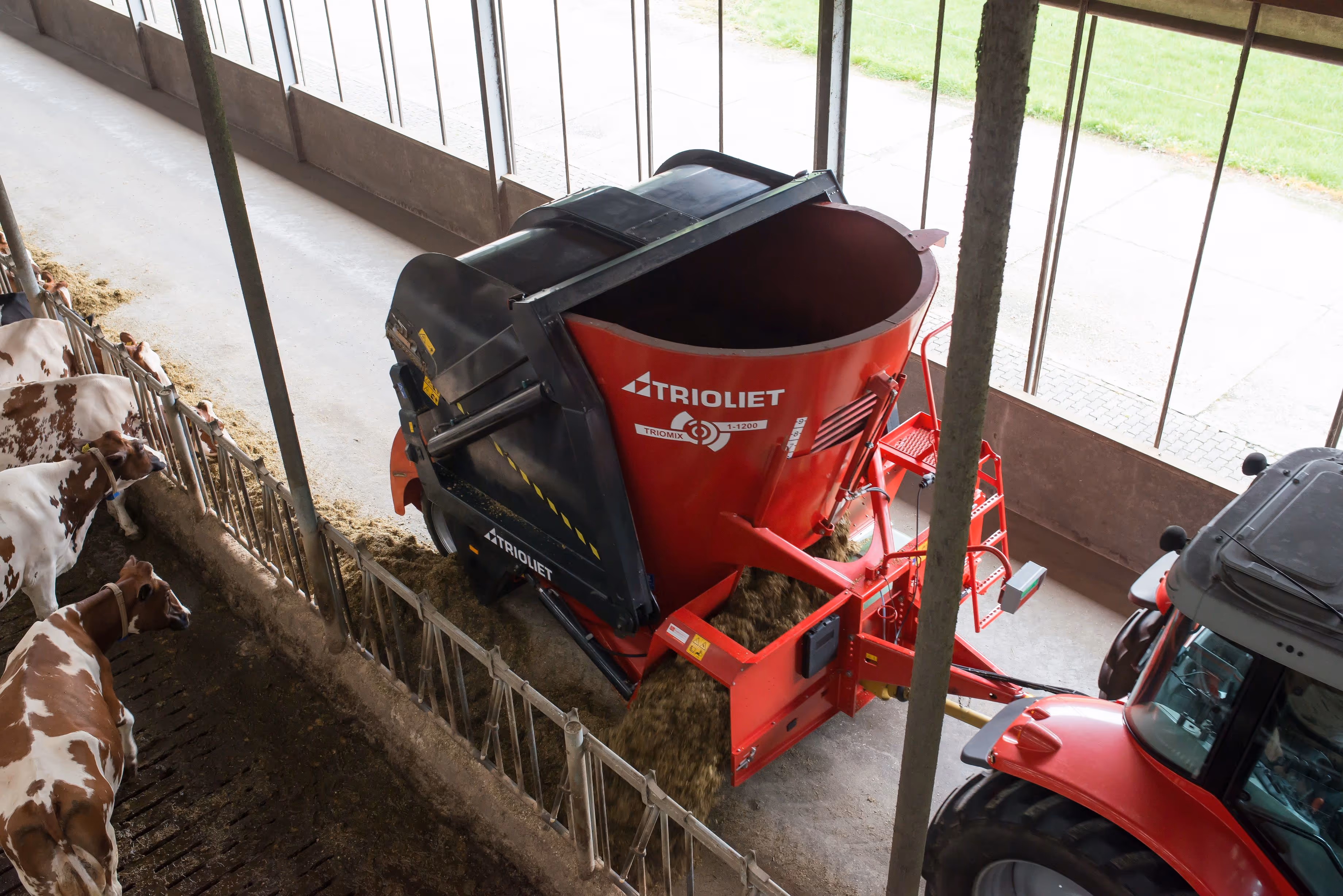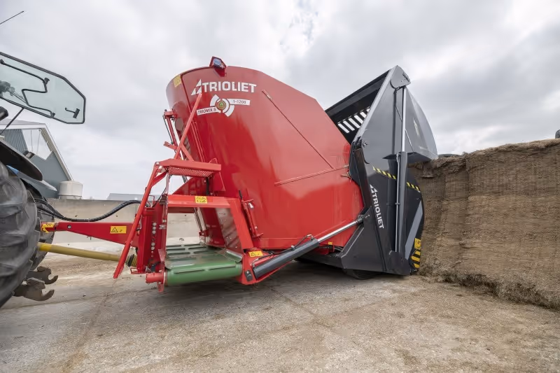 De Triomix uitkuil- en mengdoseerwagen is machine met een enorme laadcapaciteit. De zelfladende voermengwagen maakt het mogelijk om met slechts één man en één trekker te laden, te mengen en te doseren. De Triomix heeft een actief snijdend mes of een stansmes (S) en dankzij het specifieke snij- laadsysteem is er nauwelijks verlies bij het uithalen en blijft de voerstructuur intact. De Triomix 1 is ook leverbaar met stroblazer (Triomix P).